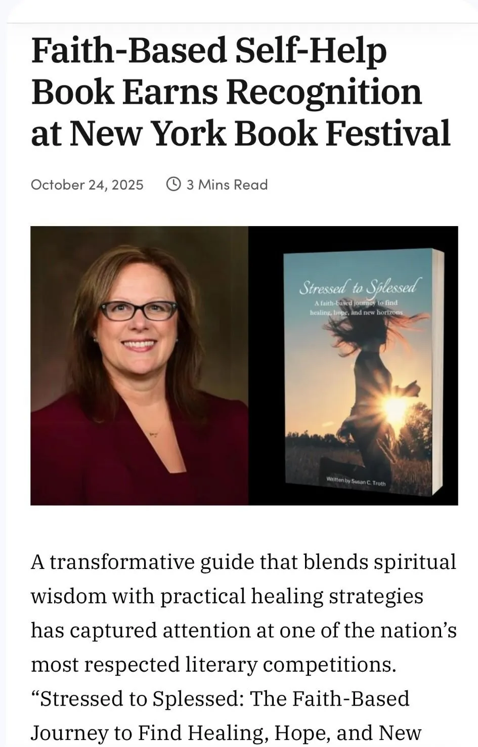 Stressed to Splessed is a personal journey to release the weight of life's pain that is holding you down and step into H.O.P.E. You will find God's truth that will lead you to Healing, Hope, and New Horizons. It is a unique and proven process with eight steps.